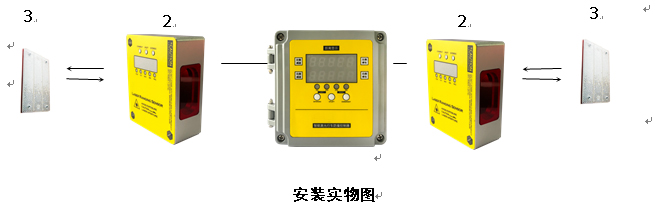 1、激光傳感器安裝在天車兩側(cè),控制器主機安裝在駕駛室內(nèi)。