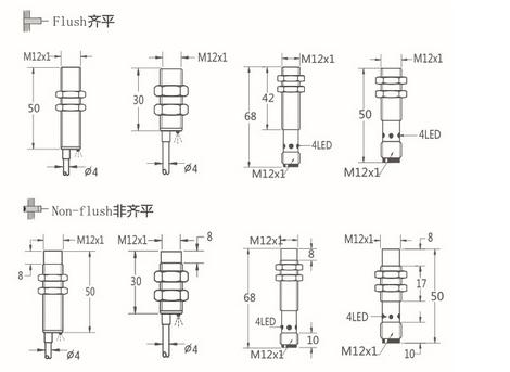 Thread size / 螺紋尺寸: M12屏蔽式 / M12非屏蔽式