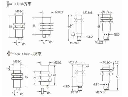 Thread size / 螺紋尺寸: M18屏蔽式 / M18非屏蔽式
