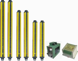 工作原理: MYD系列測量光幕由發(fā)光器和接收器組成,發(fā)光器發(fā)出的紅外光直射到接收器,形成光幕系統(tǒng)。放置在發(fā)光器和接收器之間的目標物體將會阻擋一部分光線使其不能射到相應(yīng)的接收器器件。MYD系列測量光幕使用同步掃描來識別被擋的通道。首先一個發(fā)光器通道發(fā)出光脈沖而對應(yīng)的接收器同時來尋找該脈沖,當找到后即完成一個通道的掃描,接著轉(zhuǎn)向下一個通道,直到所有的掃描都完成。當一個周期掃描完成后,系統(tǒng)記錄哪些通道通光,哪些通道被遮擋,根據(jù)系統(tǒng)定義輸出一個信號,該信號可以的模擬量信號,也可以是開關(guān)量信號。有了這些信號就可以判定被測物體的長度尺寸、寬度尺寸、高度尺寸,精確度主要取決于測量光幕的光軸間距和物體的規(guī)則狀況,有了長寬高數(shù)據(jù)就可以自動計算出體積數(shù)據(jù),在上位機控制下可以對這些數(shù)據(jù)做下一步的處理應(yīng)用,達到合格檢驗、測量、計費、分揀等目的。