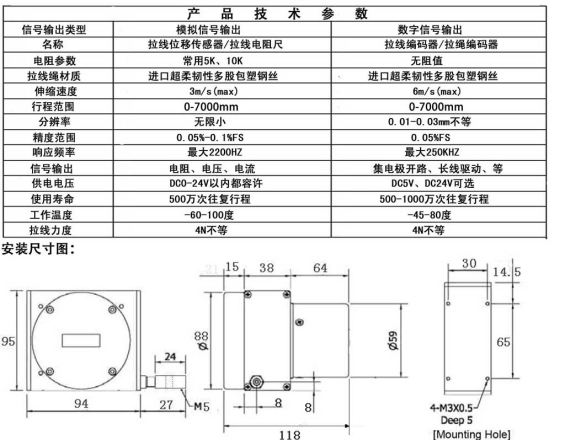 拉線位移傳感器可將機(jī)械位移量轉(zhuǎn)換成可計(jì)量的、成線性比例的電信號(hào)。當(dāng)被測(cè)物體產(chǎn)生位移時(shí),拉動(dòng)與其相連接的傳感器繩索,繩索帶動(dòng)傳感器傳動(dòng)機(jī)構(gòu)與編碼器同步轉(zhuǎn)動(dòng);當(dāng)位移反向移動(dòng)時(shí),傳感器內(nèi)部的自動(dòng)回旋裝置將自動(dòng)收回繩索,并在繩索伸收過(guò)程中保持其張力不變;從而輸出一個(gè)與繩索移動(dòng)量成正比例的電信號(hào)。 傳感器具有獨(dú)立自動(dòng)排線機(jī)構(gòu),保證拉伸繩自動(dòng)均勻排線、保證傳感器具有高獨(dú)立線性精度和較長(zhǎng)的傳感器使用壽命。